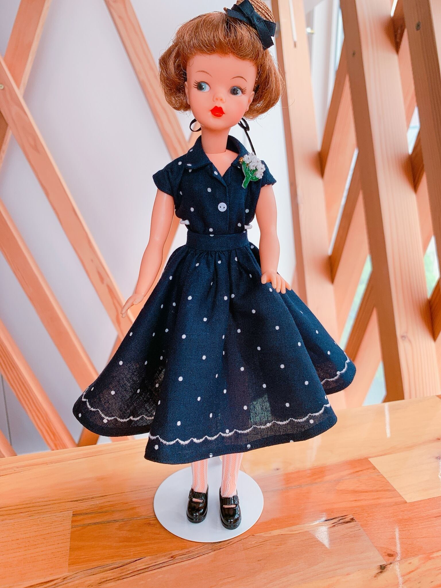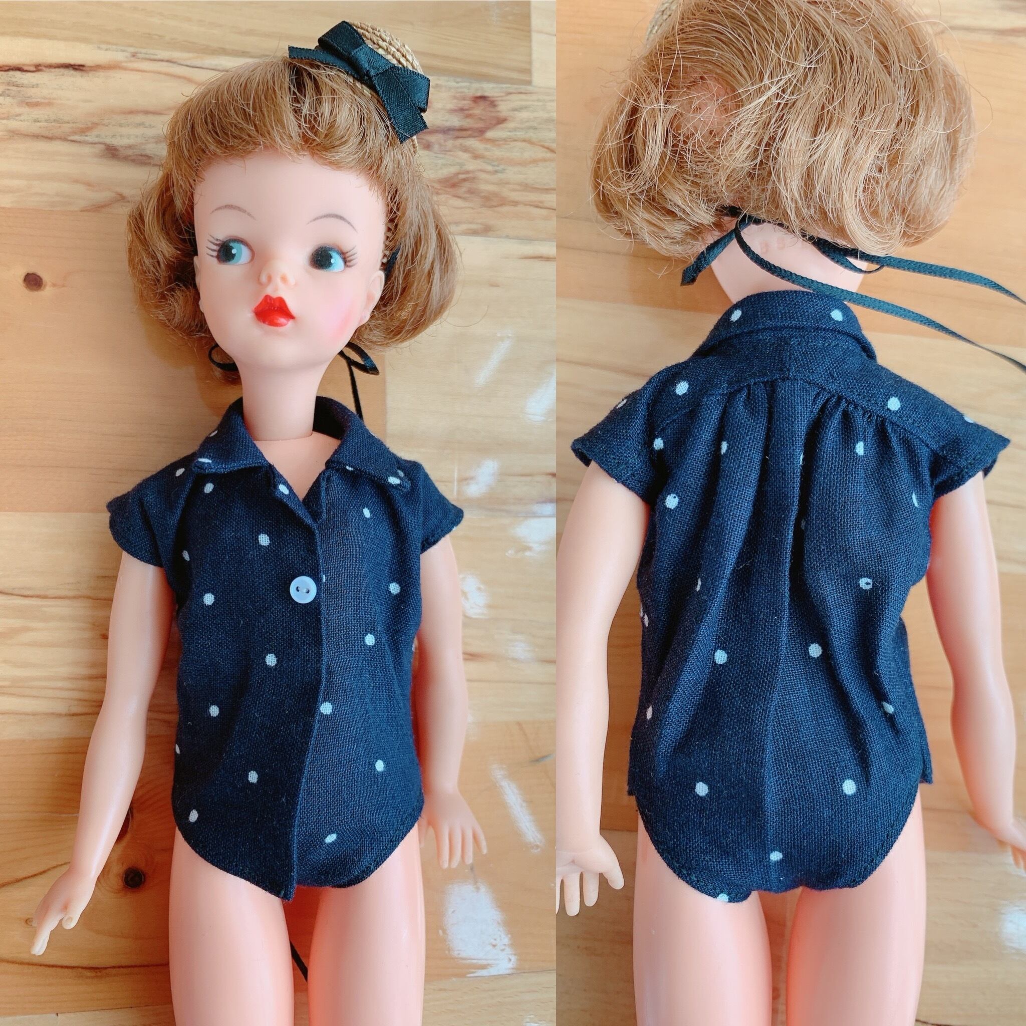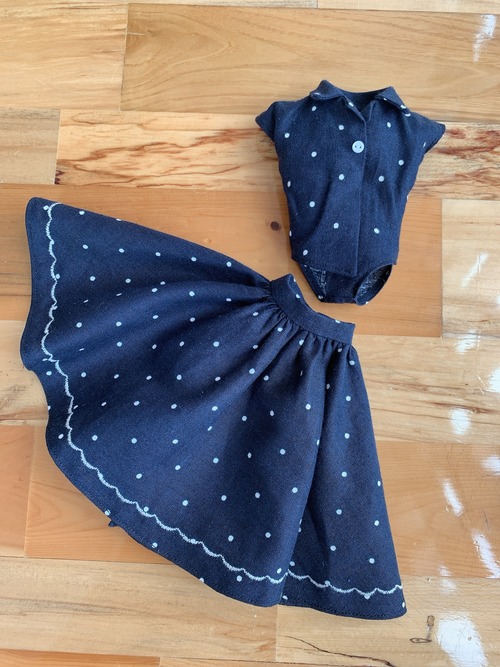 タミちゃん専用サイズの、ボディシャツとスカートのセットです。可憐に広がるスカートの裾には刺繍が入っています。 オーダー5000円〜