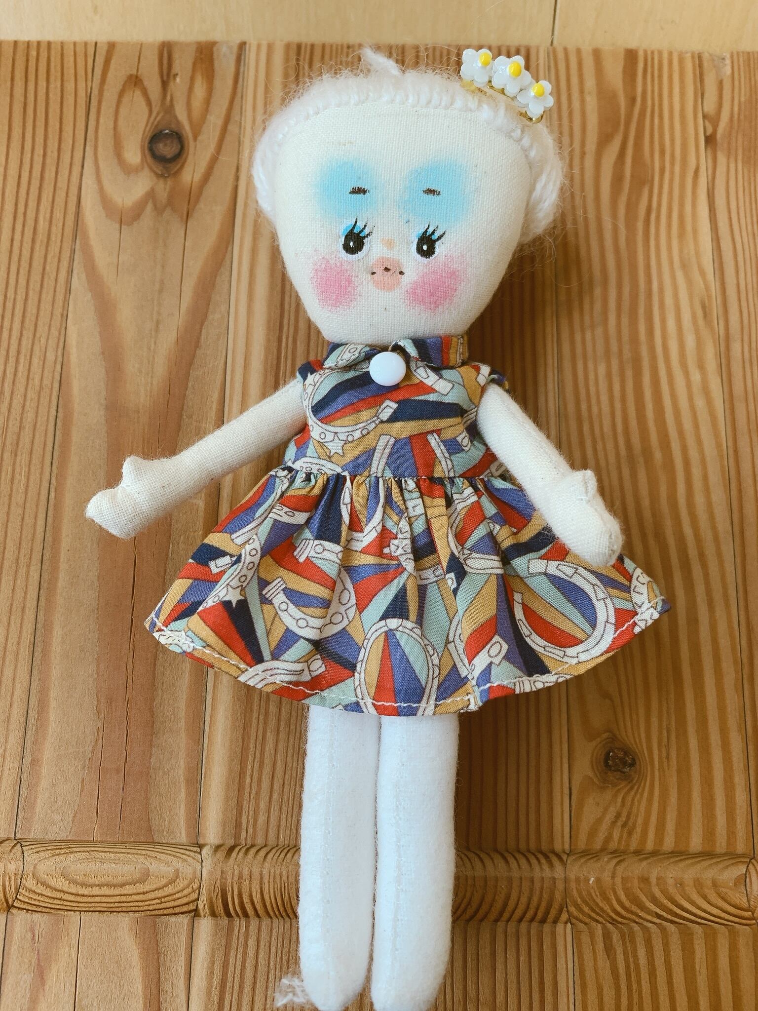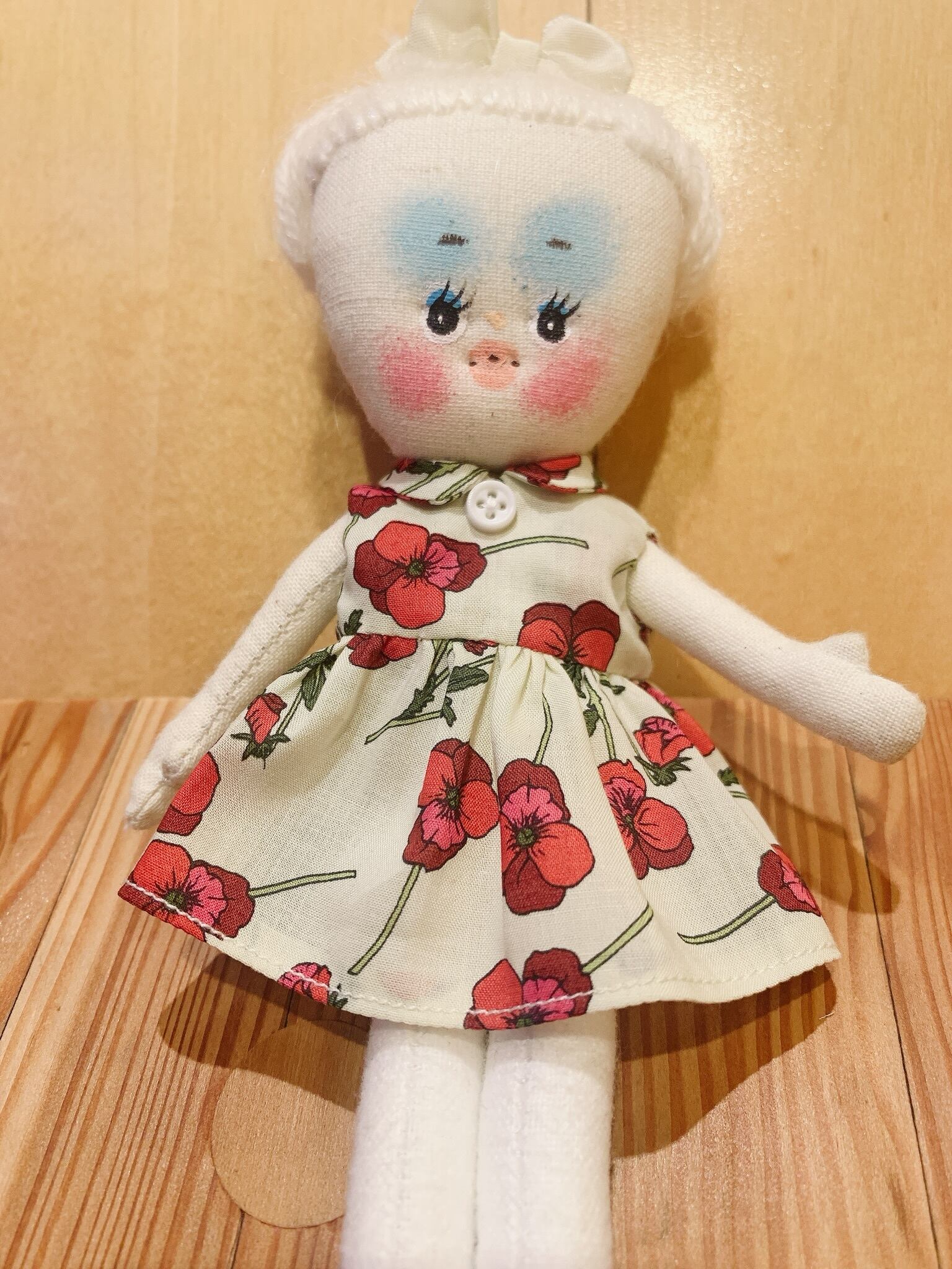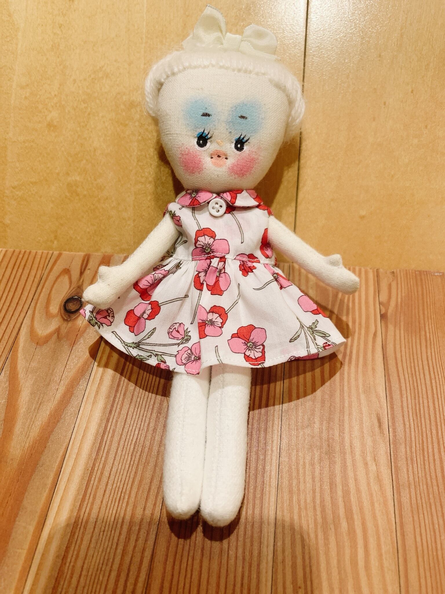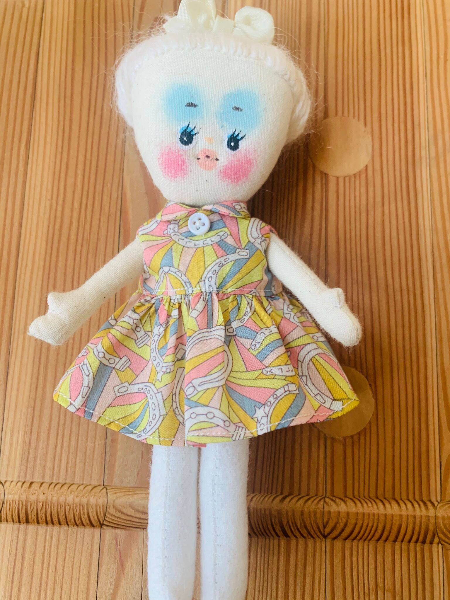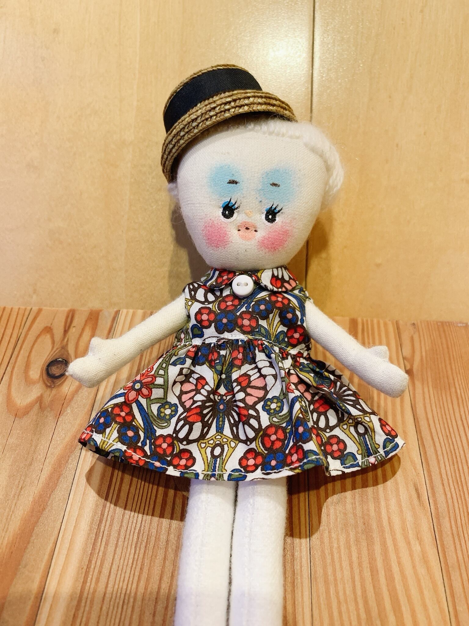 リバティ生地を使用した、プチやぁこちゃんサイズのワンピースです。 1点1000円となります。